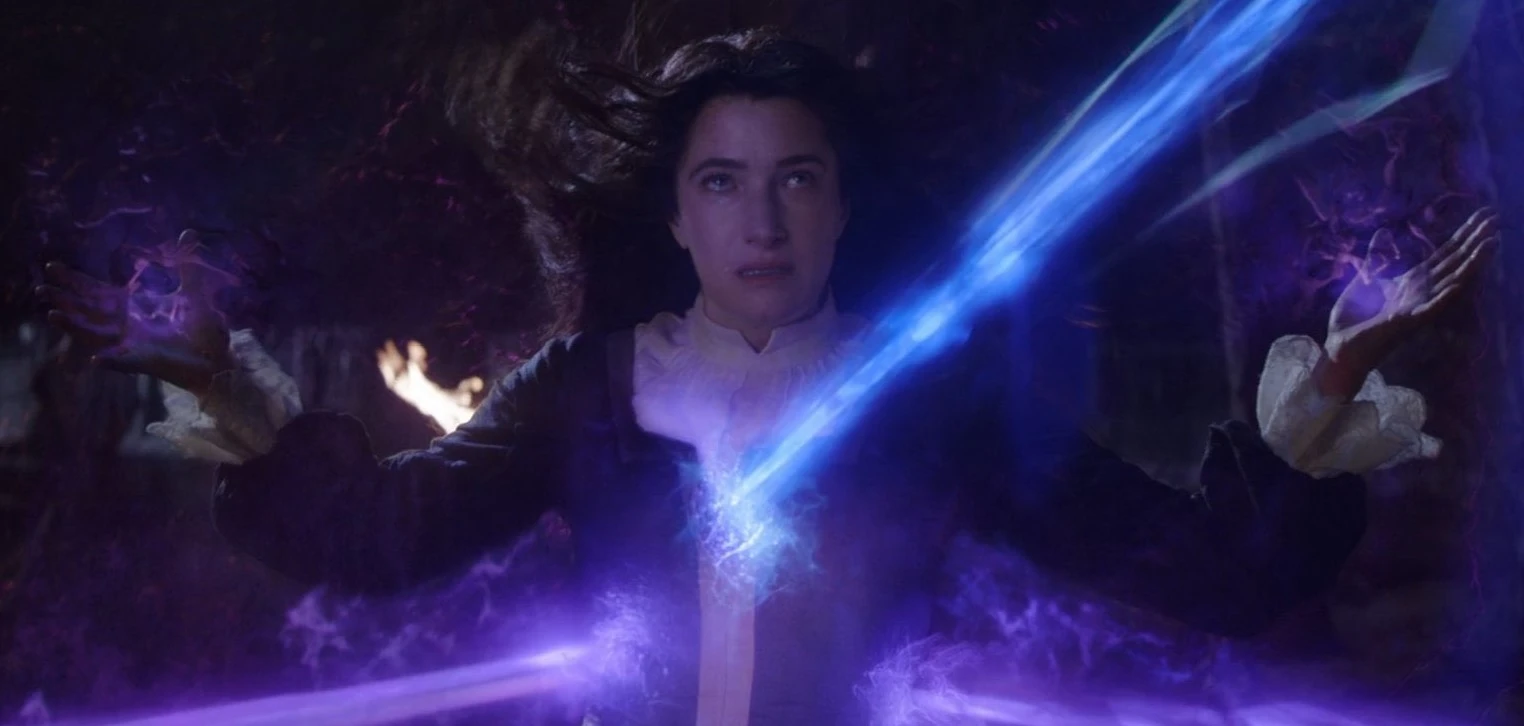 Après avoir vu tout ce dont elle avait besoin pour assembler les pièces, Harkness a applaudi la démonstration de magie de Wanda Maximoff, avant de se téléporter à l'extérieur, où elle a tenu Tommy et Billy Maximoff avec des nœuds magiques autour de la gorge, Harkness a ensuite révélé à Maximoff qu'elle était un être longtemps considéré comme un mythe, un être capable de créer quelque chose à partir de rien avec le grand pouvoir de la magie du chaos, et que Maximoff était en fait la sorcière rouge.[1]