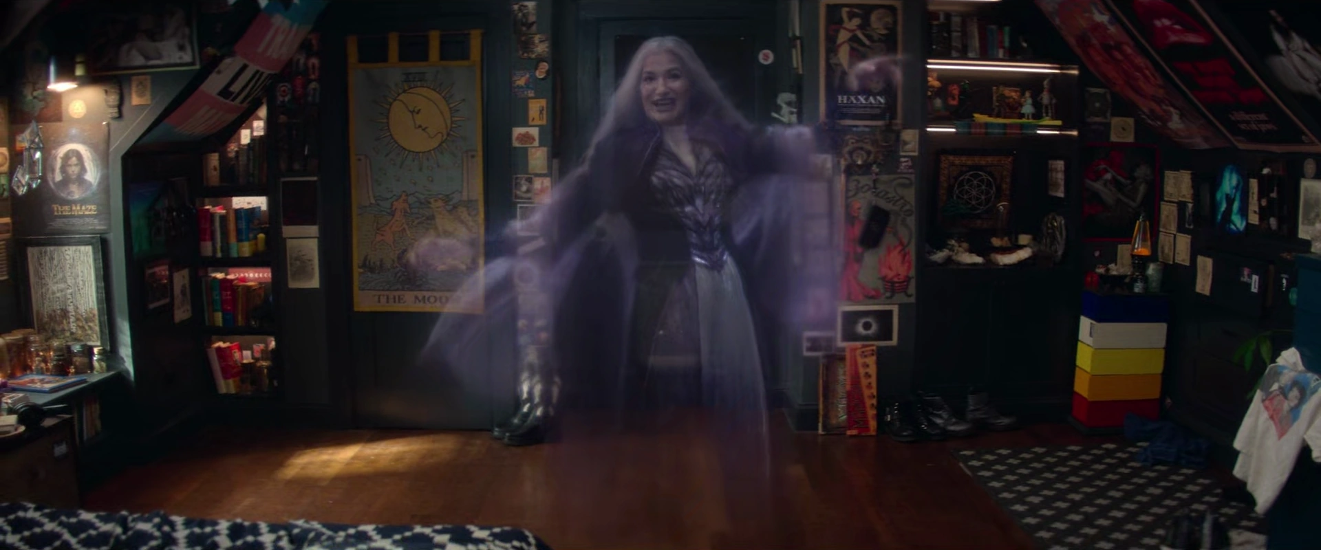 Les deux pénétrèrent dans le château, où ils furent transformés pour ressembler à des sorcières emblématiques de la culture pop, Harkness étant habillée en méchante sorcière de l'Ouest. Harkness a affirmé que la méchante sorcière était inspirée d'elle, bien que Maximoff ait continué à être dédaigneux à son égard. Ils ont compris que le procès impliquait qu'ils fassent du Tarot, ce que Maximoff a fait en décidant de faire sur Harkness. Ils s'assoient, mais au moment où Maximoff pose la première carte, une épée tombe du plafond. Ils levèrent les yeux et virent que des épées pendaient au-dessus du plafond.