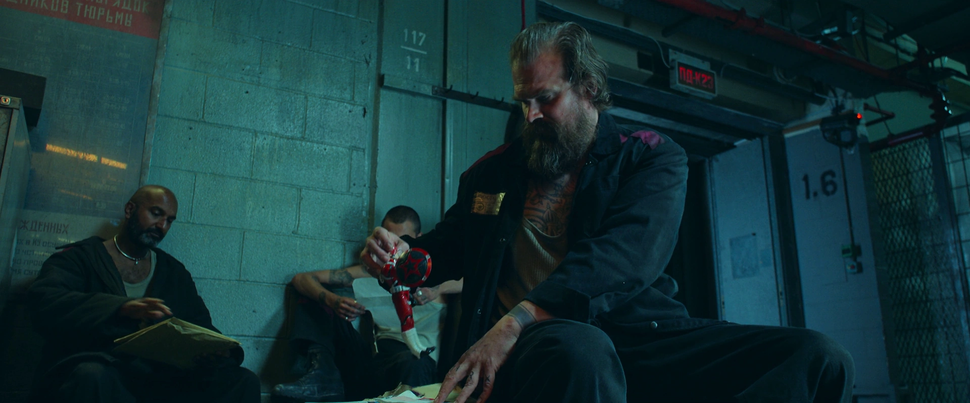 John Macdonald, Rob Mars, Scott Hunter, Keith Adams, Joe Bucaro III et Mike Johnson étaient des doubles cascadeurs pour David Harbour dans le rôle de Red Guardian.