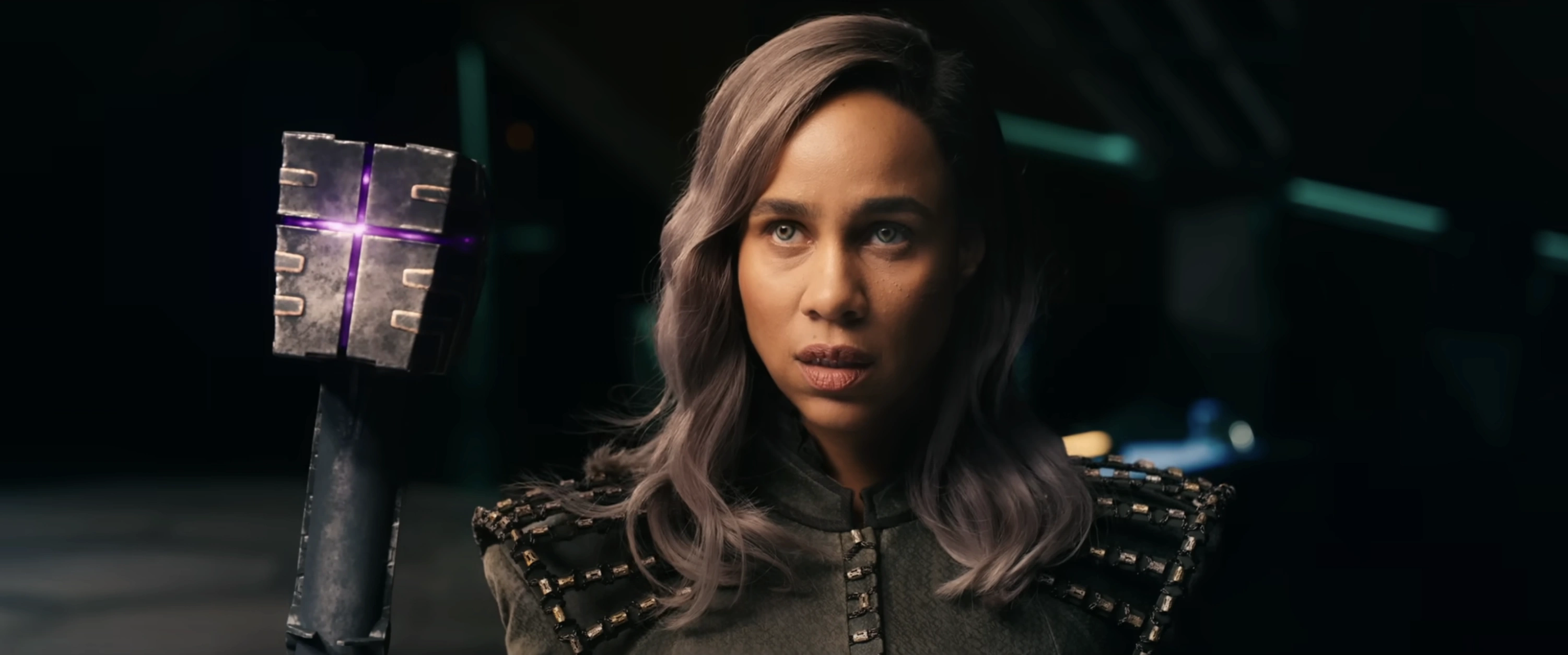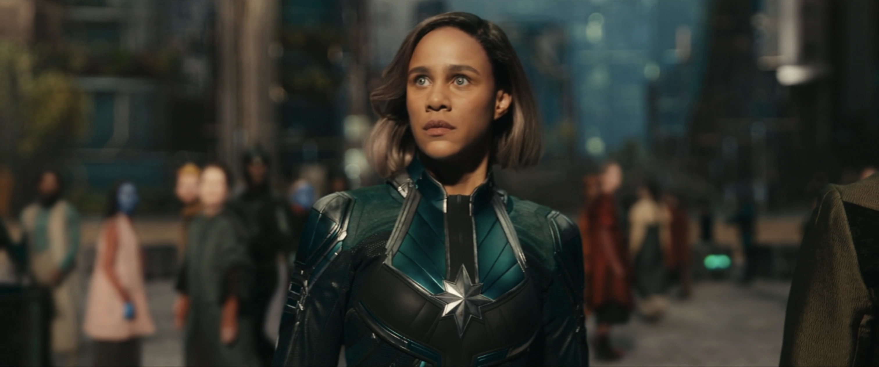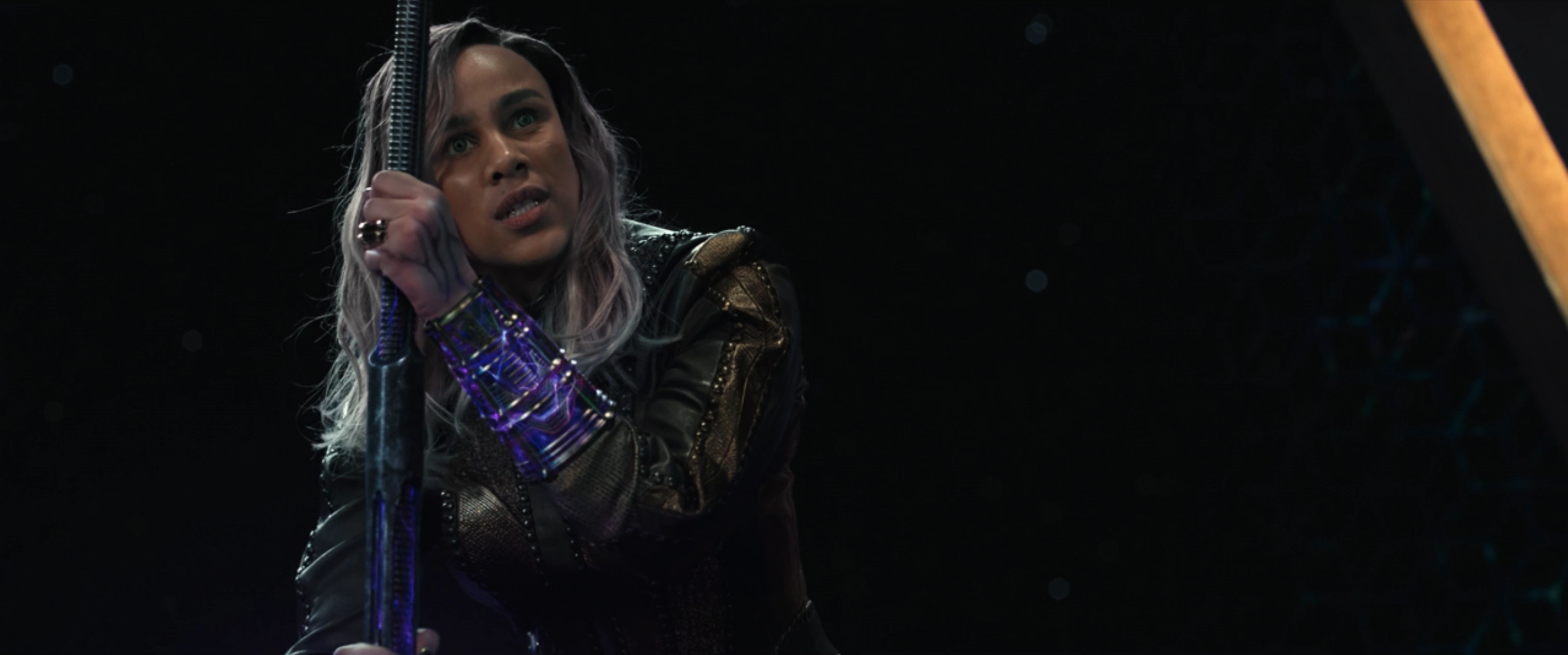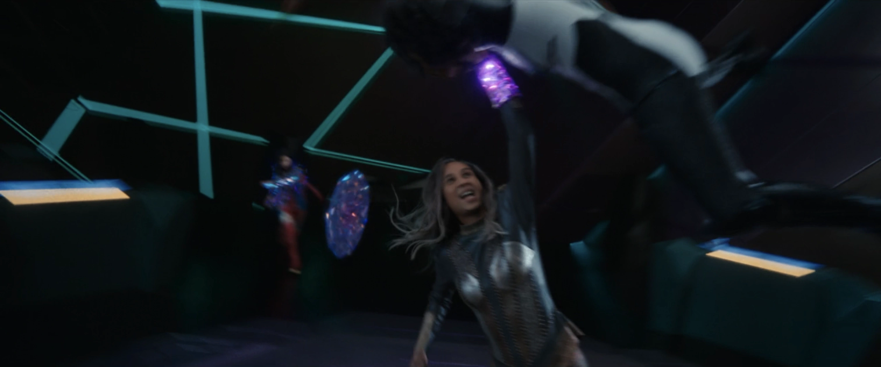 Elle frappe alors le marteau avec son bras, ce qui fait mettre un genou à terre à Rambeau. Rambeau recule, envoyant des ondes de choc du bracelet qui les projettent tous les deux au loin. Dar-Benn se rattrape en plantant le marteau dans le navire. Elle s'en prend alors à Rambeau, mais Danvers lui dit de ne pas le faire. Dar-Benn a simplement dit qu'il était trop tard. Les deux s'affrontent dans une impasse jusqu'à ce que Rambeau entre en scène et repousse Dar-Benn d'un coup de pied.