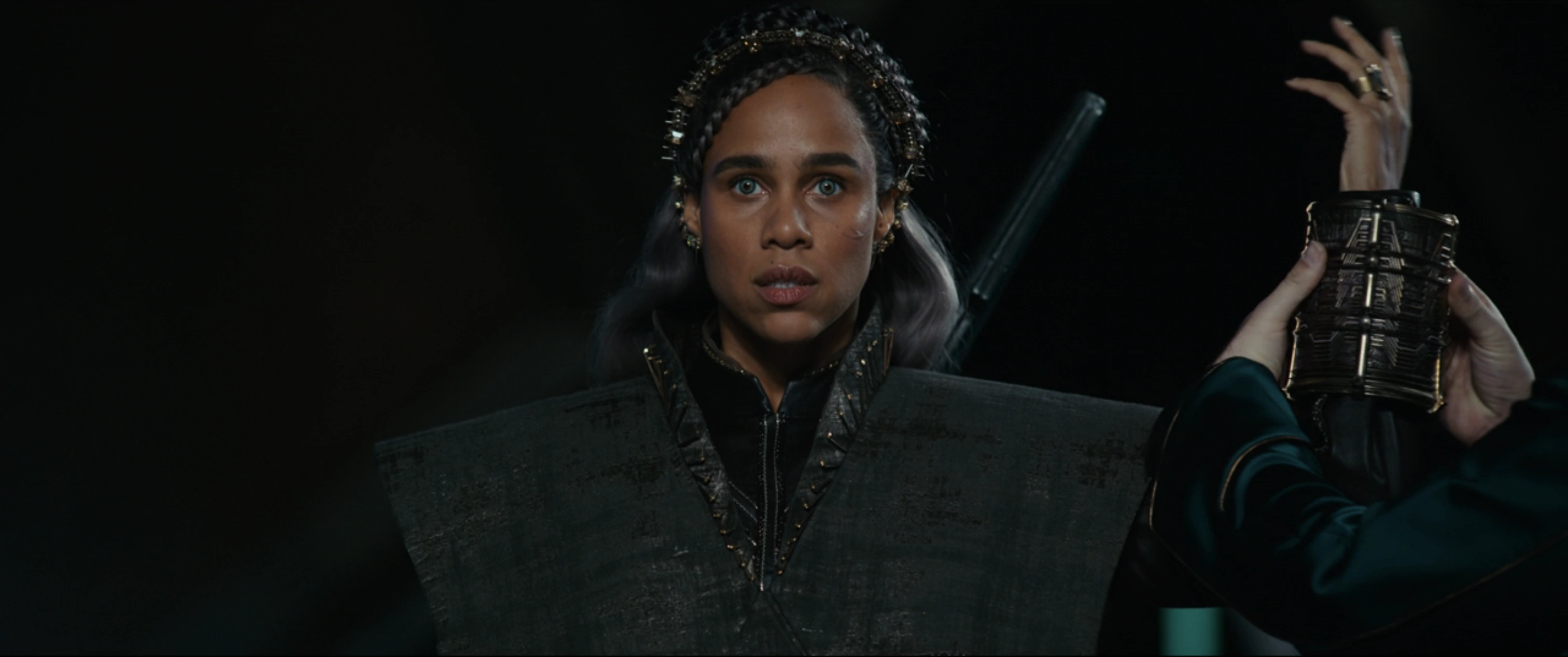 Dar-Benn s'approcha de la statue et la frappa une fois avec son arme universelle, la faisant se froisser et révéler ses ressources internes. Pour se préparer à obtenir les bracelets, Dar-Benn a retroussé ses manches et s'est mise à fouiller dans les décombres pour trouver une bande. Elle a admiré la bande et l'a mise sur elle, sentant la poussée d'énergie en elle. Satisfaite, Dar-Benn cherche le second, mais s'aperçoit qu'il n'y en a qu'un. Ty-Rone lui a assuré qu'ils continueraient à chercher.[1]
