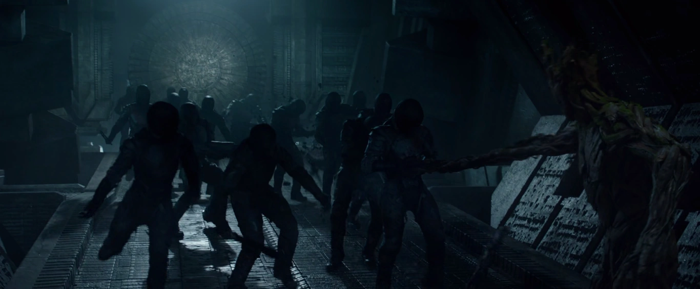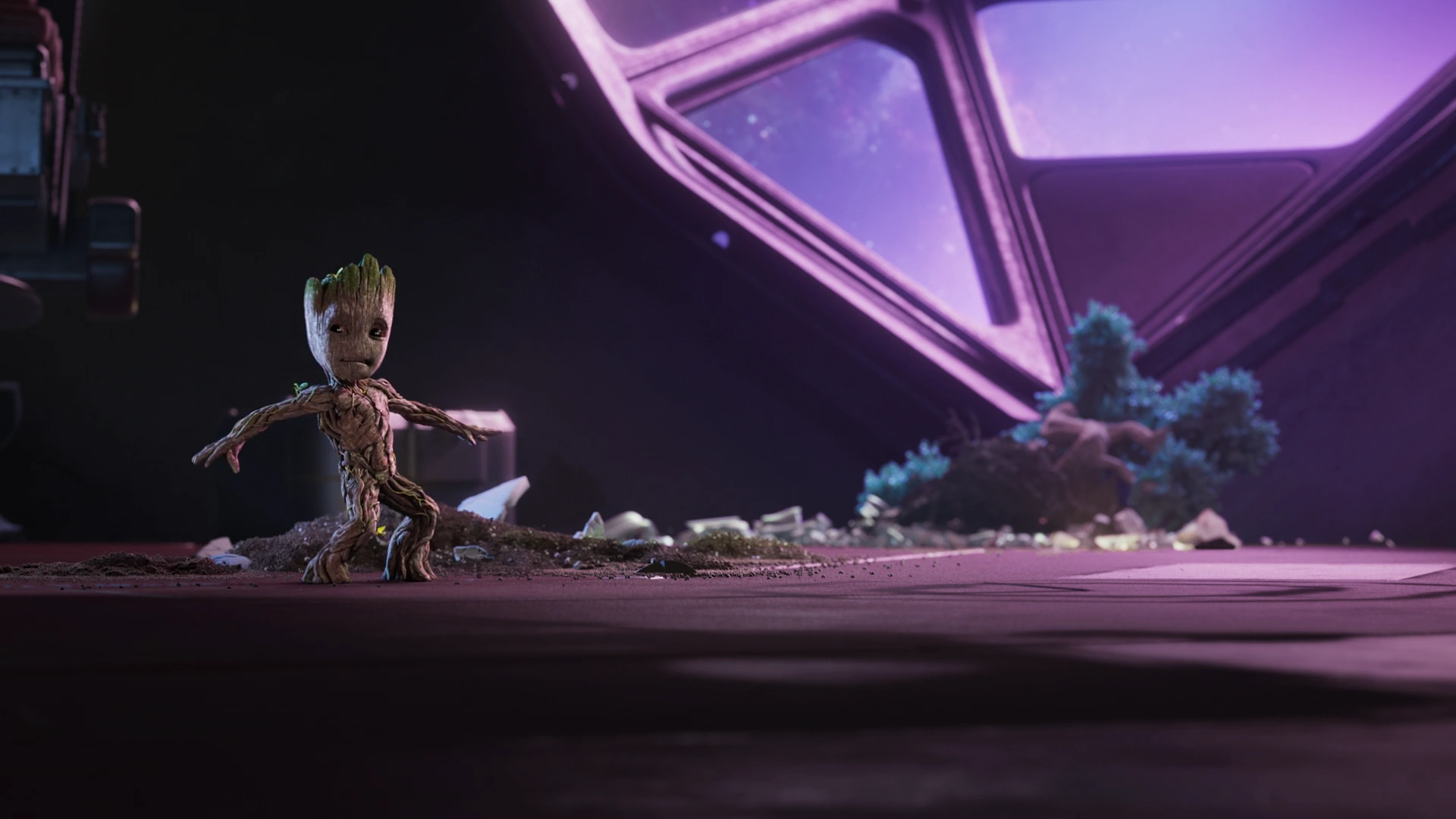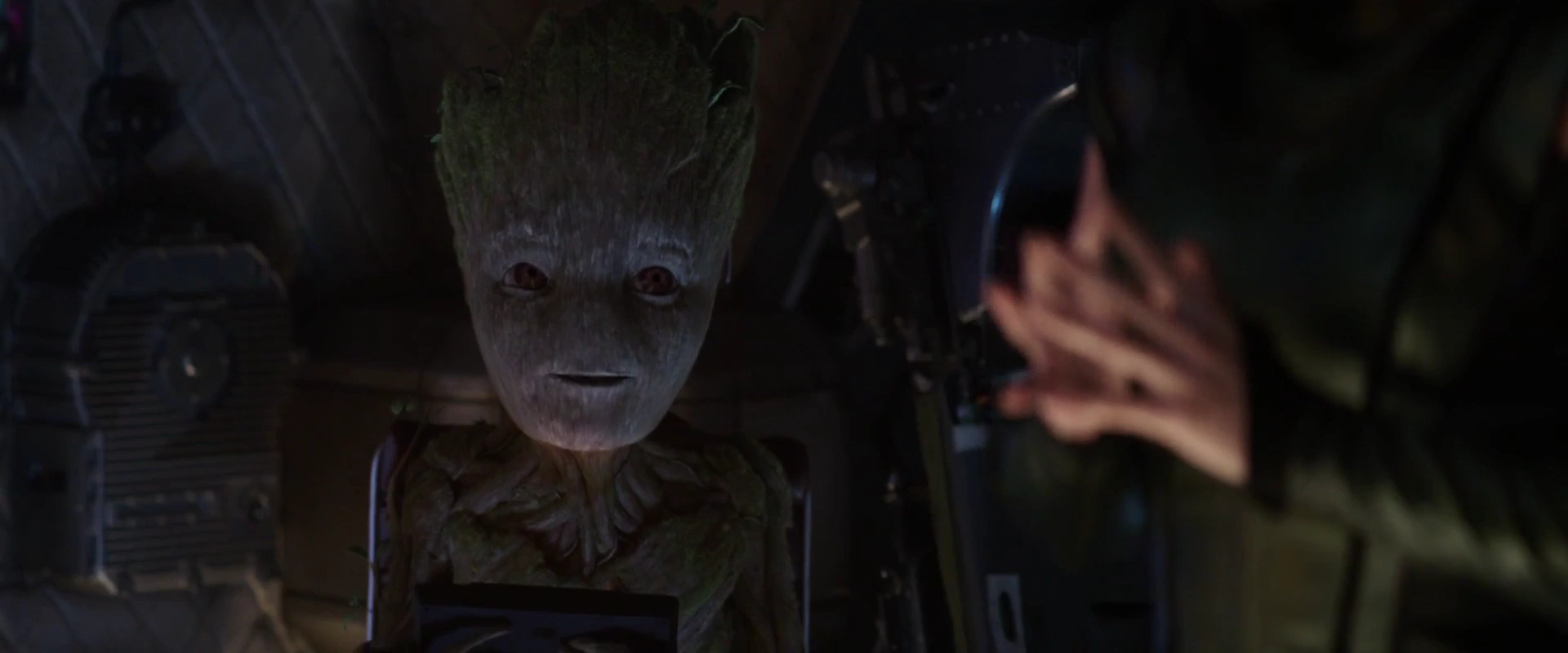 Une fois qu'ils ont atterri et quitté le navire écrasé, ils ont découvert que l'Astre noir était trop sombre pour qu'ils puissent le voir, alors Groot les a guidés à travers l'obscurité en créant des spores bio-lumineuses pour créer une lumière étrange à travers le navire pour leur montrer le chemin, quand Drax a demandé comment il pouvait le faire, Star-Lord a noté que la réponse serait probablement "Je s'appelle Groot". Soudainement, ils ont été arrêtés par Nebula , alors qu'elle maudissait Gamora pour avoir trahi Ronan et Thanos.
