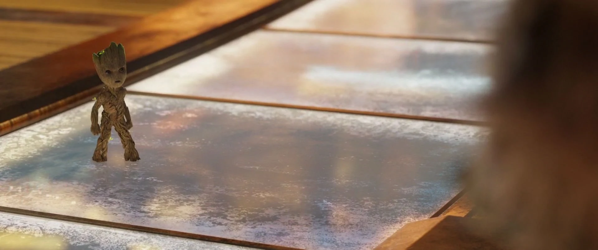 Gamora a révélé au groupe qu'elle prévoyait de trahir Ronan l'accusateur et de vendre l'orbe à un tiers. Groot a commencé à parler au groupe, ce qui a mis Quill en colère en se demandant pourquoi il ne pouvait dire que trois mots. Rocket a noté que Groot ne parle pas bien comme les gens comme lui et Quill, car son vocabulaire est limité à je, s'appelle et Groot. Une fois que Quill a confronté le garde et a demandé son Walkman, Groot a vu la situation s'aggraver.
