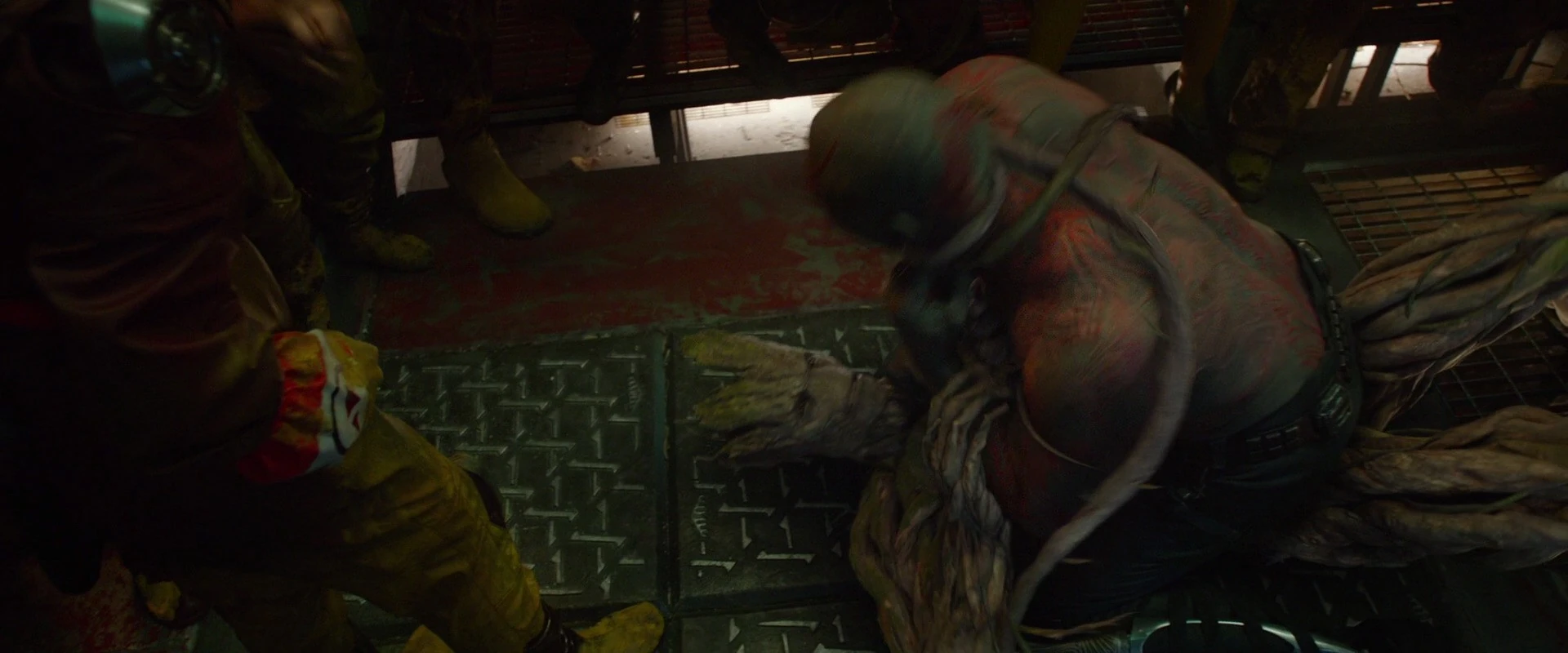 Lorsque Groot a entendu parler de la suppression du verrouillage d'urgence de la prison, il a décidé d'arracher l'appareil qui aurait été utilisé comme étape finale. Par erreur de sa part, Groot a déclenché l'alarme, mettant toute la prison en état d'alerte. Groot était alors pris en otage par de nombreux drones du Kyln qui ont commencé à lui tirer dessus. Alors que Rocket criait à l'erreur de Groot d'avoir alarmé les gardes, Drax le destructeur a combattu les gardes qui ont tenté de tirer sur lui et Groot.