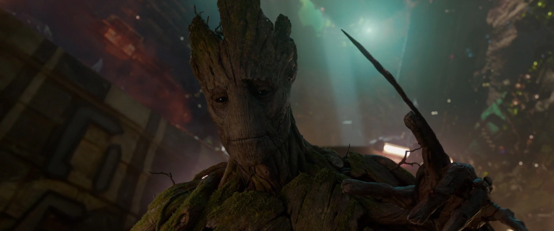 Alors que Quill combattait Gamora, qui tentait de voler l'orbe, Groot a attrapé un sac et a agrippé ses racines sur Gamora, cependant, Rocket lui a dit de capturer Quill. Dans une rage pure, Gamora a jeté Rocket à travers la place, a désarmé Quill de l'orbe et a utilisé son épée Godslayer pour effleurer l'avant-bras de Groot. Une fois que Quill a appréhendé Gamora de sa possession de l'orbe, Groot a ensuite capturé Quill avec le sac et a suivi Rocket pour récupérer la prime.