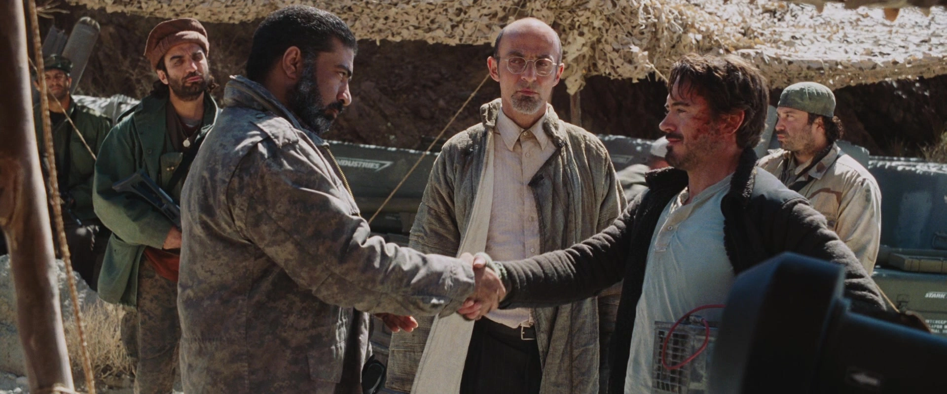 Yinsen aide Stark à entrer dans l'armure