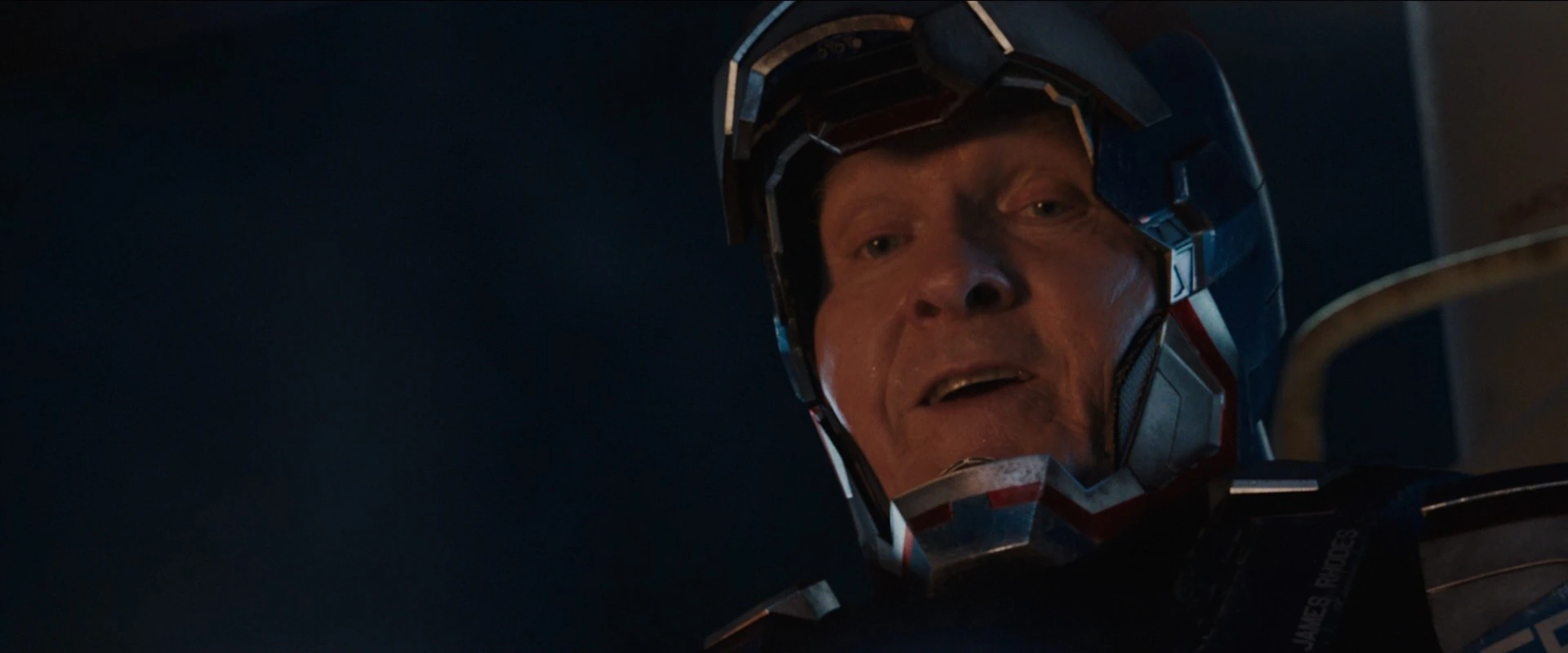 - "Au centre du dispositif de riposte de mon gouvernement à ces actes terroristes se trouve une toute nouvelle recrue. J'ai nommé le colonel James Rhodes. Le peuple américain le connaîtra bientôt sous le nom d'Iron Patriot."