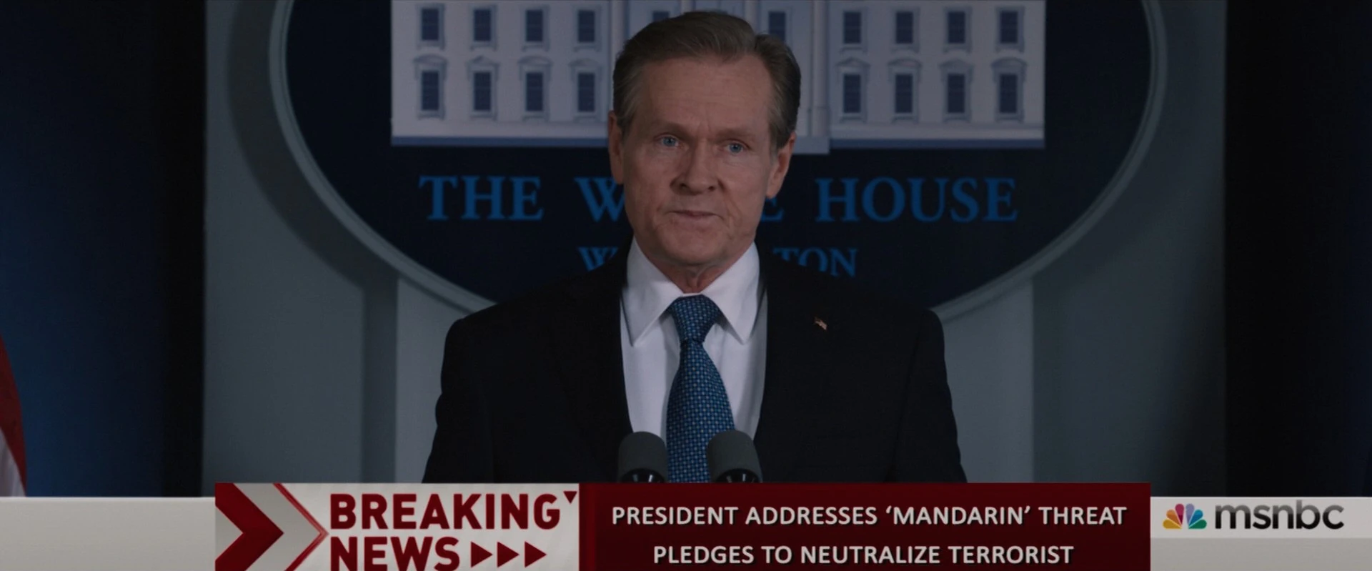 Dans une vidéo du Mandarin, il a menacé de tuer Thomas Richards si Ellis ne l'appelait pas dans les 30 secondes. Ellis a regardé la vidéo depuis l'Air Force One et a demandé comment le numéro du mandarin s'était retrouvé sur son téléphone. Bien que son personnel ait déconseillé de négocier avec le terroriste, Ellis a décidé d'obéir à l'ordre du mandarin de sauver Richards.