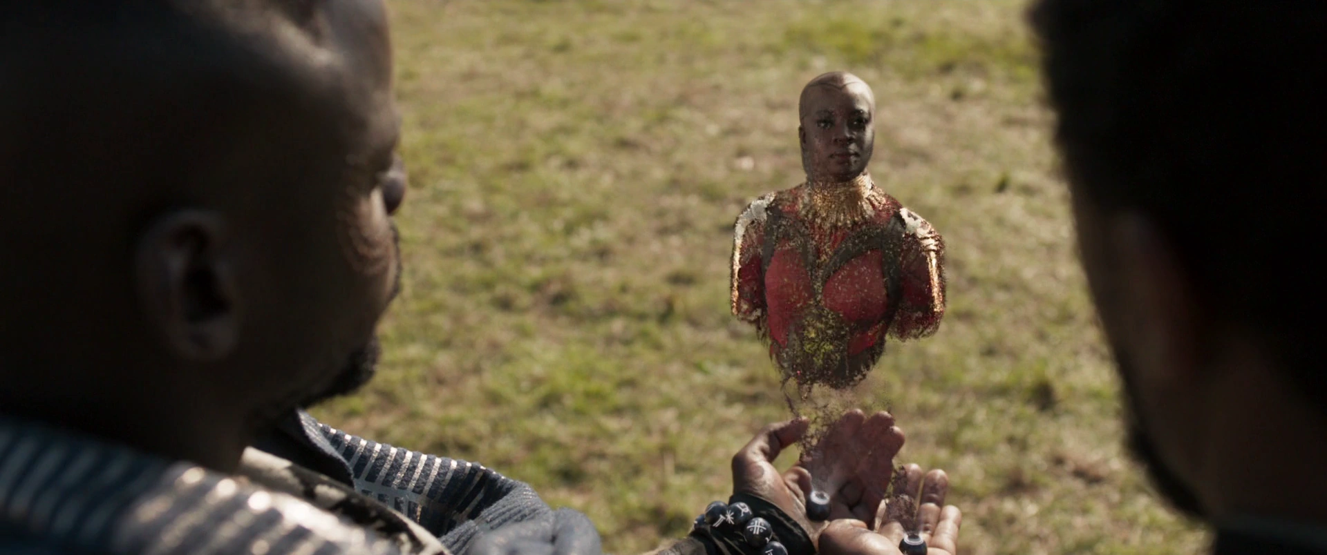 À l'horizon, Okoye et T'Challa ont réussi leur mission et sont rentrés chez eux au Wakanda avec Nakia. Alors que le soleil se lève d'en haut, T'Challa a été réconforté par Nakia, car ils étaient profondément attristés par la mort de l'ancien roi T'Chaka. Pendant que T'Challa et Nakia conversaient, Okoye a piloté le Royal Talon Fighter jusqu'à ce qu'ils atteignent leur destination.