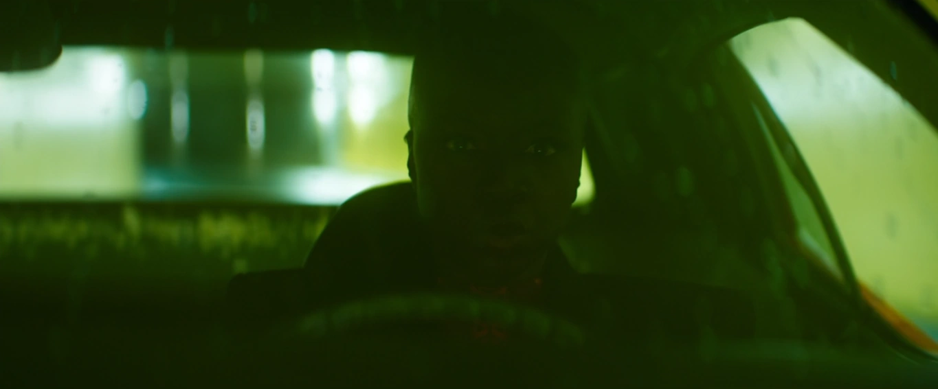 Ils ont conduit et ont poursuivi les voitures, mais Okoye a menacé Griot. Griot a cédé et a donné à Okoye les commandes manuelles. Okoye a lancé sa lance dans le coffre de la voiture, l'envoyant à travers le coffre. Elle s'en est servie pour renverser une voiture avant de retrouver Shuri. Soudain, un drone envoyé par Williams est tombé sur les officiers, leur permettant de s'échapper. Quand ils ont pensé être en sécurité, une énorme baleine est sortie de l'eau, les bombardant avec une bombe d'eau Talokanil.
