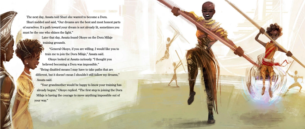 - ↑ Traduction de l'anglais, citation originale : "Your grandmother would be happy to know your training has already begun. The first step to joining the Dora Milaje is having the courage to move anything impossible out of your way."