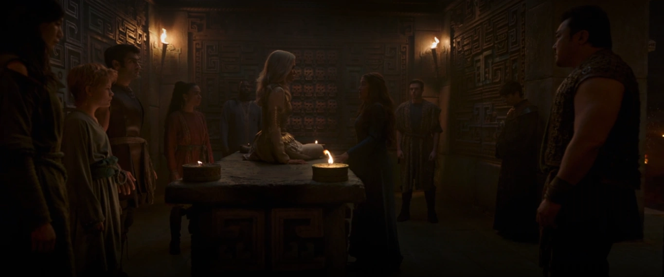 Ikaris, Sprite, Kingo et Karun Patel. Les deux premiers s'opposeraient aux autres et laisseraient l'Émergence se produire alors que Kingo ne voulait pas se battre avec sa famille à ce sujet. Druig a suggéré qu'ils avaient besoin d'un plan de secours en cas d'échec, et a souligné que Sersi pouvait transformer les êtres sensibles maintenant. Elle s'est opposée avec véhémence à l'idée parce qu'utiliser ses pouvoirs reviendrait à tuer Tiamut, bien que Thena l'ait convaincue de reconsidérer, en utilisant son grand amour pour les humains comme motivation.