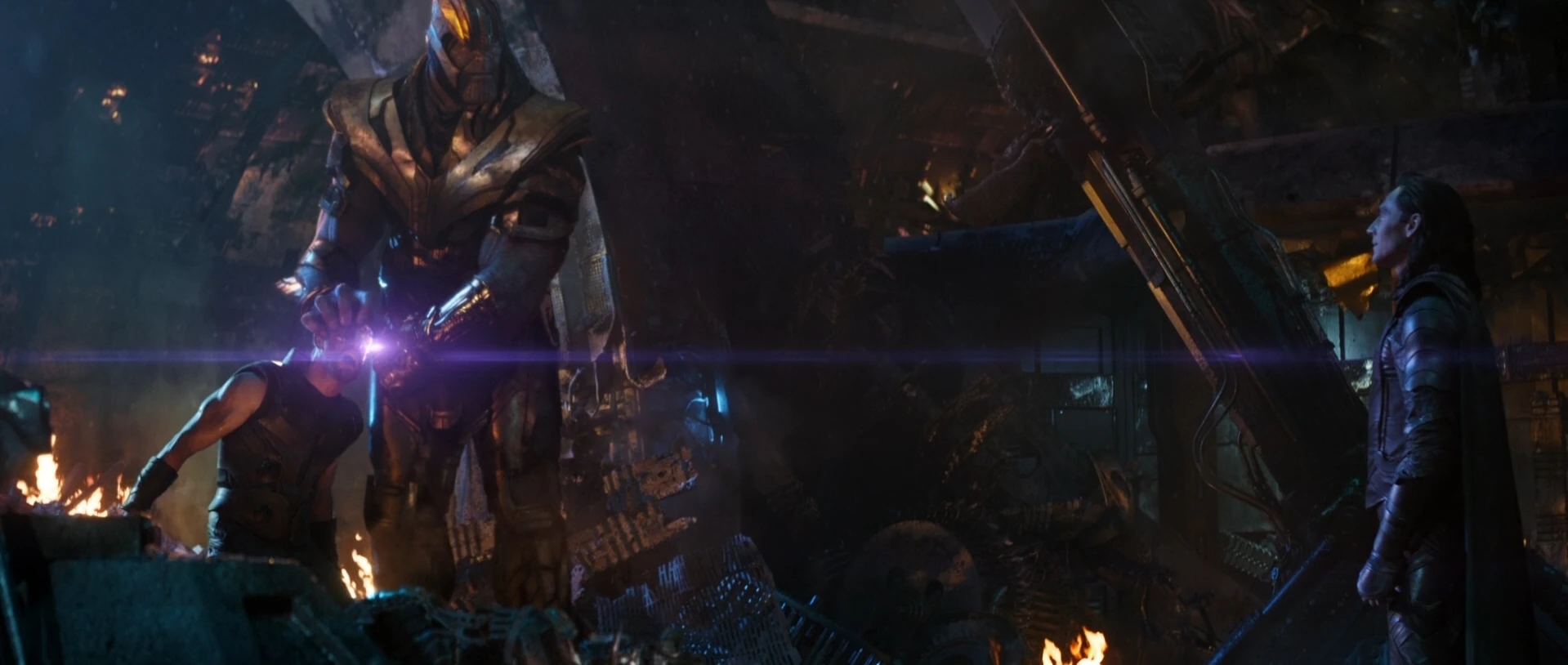 Loki a apparemment prêté allégeance à Thanos une fois de plus, nommant ses titres de roi légitime de Jotunheim et de fils d'Odin alors qu'il s'avançait vers Thanos et inclina la tête. Cependant, Thanos soupçonnait que quelque chose n'allait pas et a vu Loki essayer de plonger son poignard dans sa gorge, alors que Thanos était capable d'utiliser la pierre de l'espace pour geler Loki en place à quelques centimètres, se moquant du vœu de Loki de fidélité éternelle.