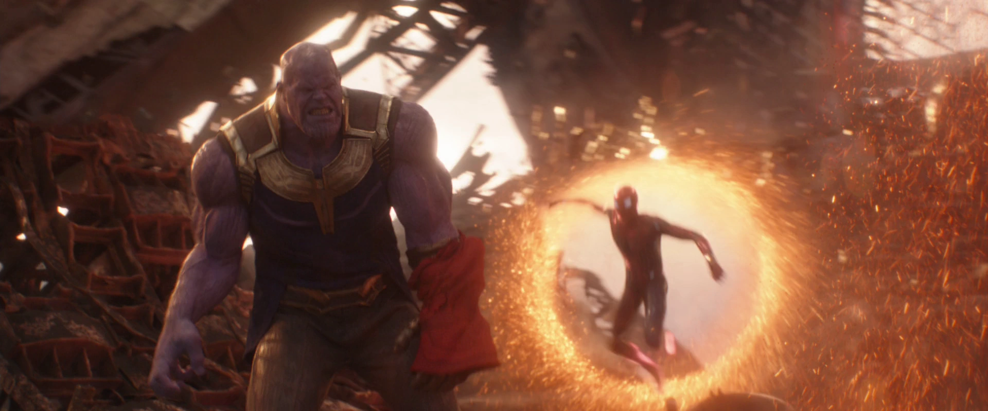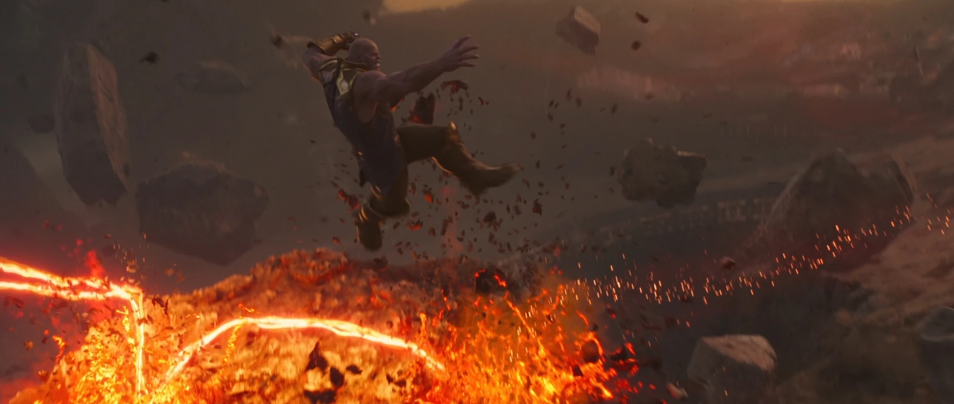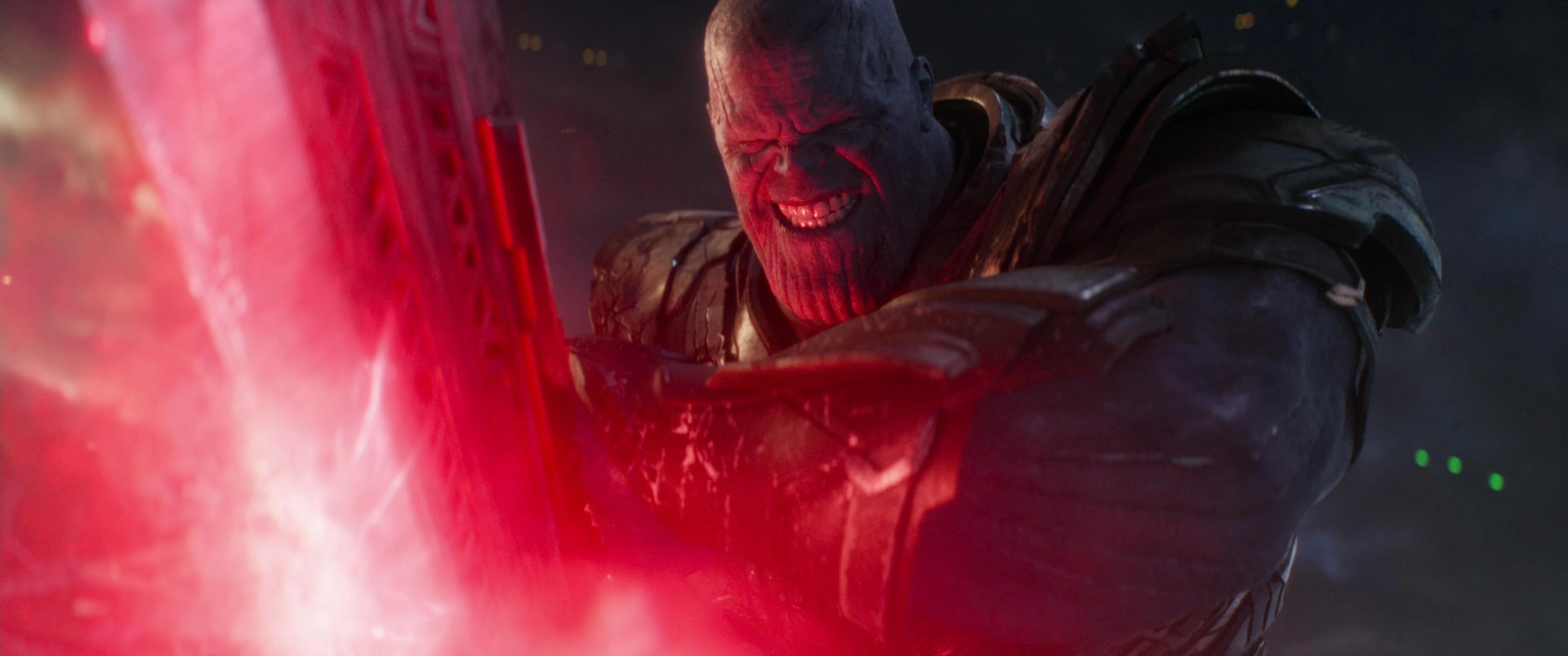 - Destruction des pierres : Thanos a pu détruire les pierres d'infinité en retournant leurs énergies contre elles, mais cela a encore endommagé le gant déjà paralysé et brûlé le côté gauche de son corps, fusionnant le gant à son bras et aggravant ses blessures.