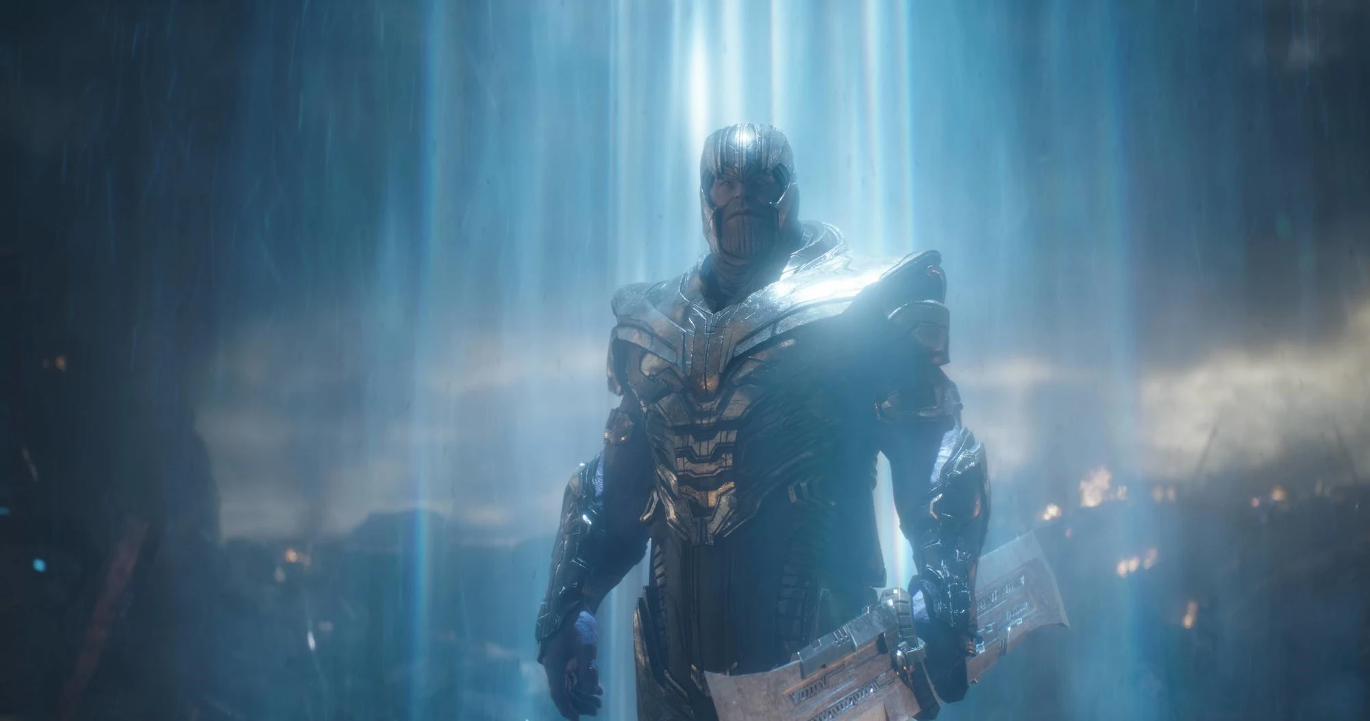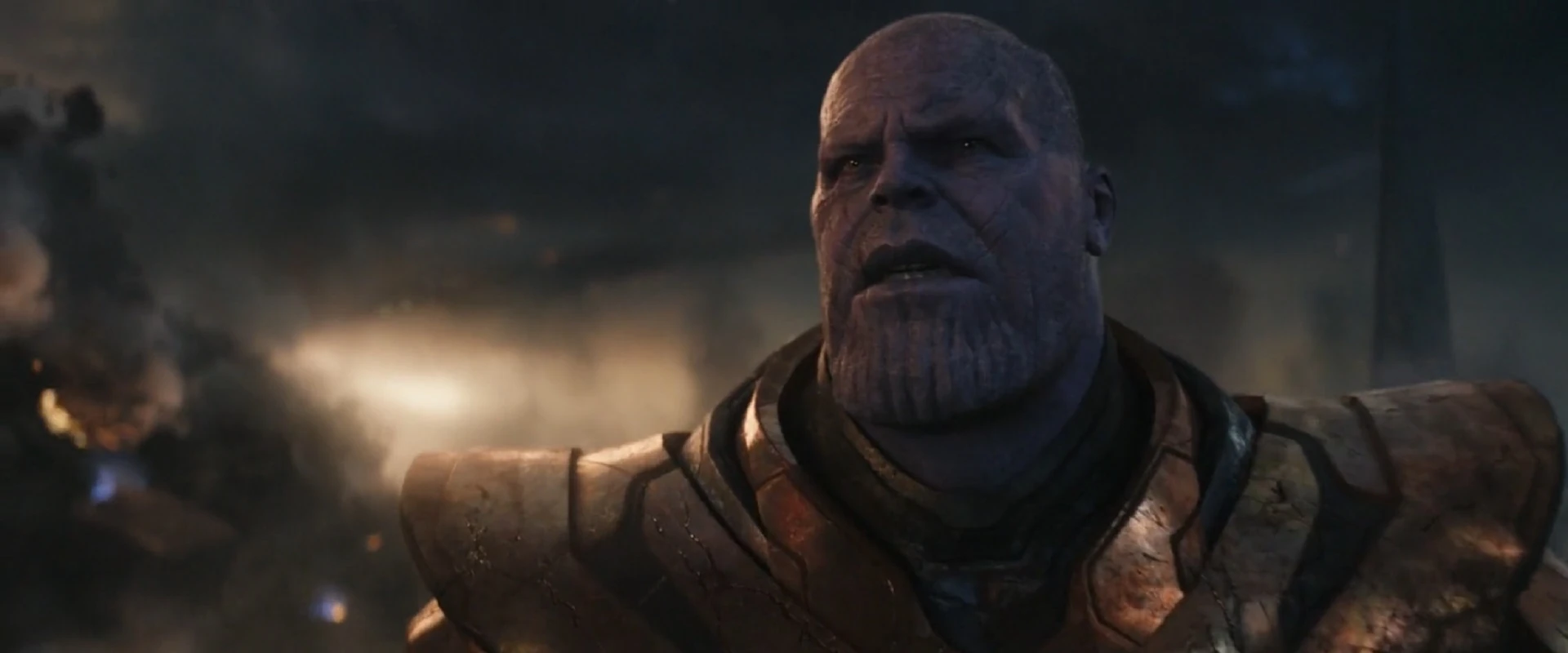Malgré ses vastes armées de Chitauri et son armement puissant, Loki a été vaincu pendant la bataille de New York après qu'Iron Man ait détruit le centre de commande Chitauri.[4] Cela a abouti à la perte du Sceptre et de la pierre d'infinité au profit d'HYDRA pour leurs propres recherches,[10] tandis que Thor transportait le tesseract et le Loki alors captif à Asgard.[4] L'Autre rapporta à son maître que les humains étaient des misérables indisciplinés, et que les défier reviendrait à courtiser la Mort. Thanos se leva et sourit à la perspective de ce qui allait arriver.[11] Thanos a alors commencé à rechercher les «misérables indisciplinés», dont il a découvert qu'ils étaient appelés les Avengers,[5] gagnant un intérêt particulier pour Tony Stark, qu'il considérait comme un esprit apparenté également pour qui «le savoir est une malédiction».[1]