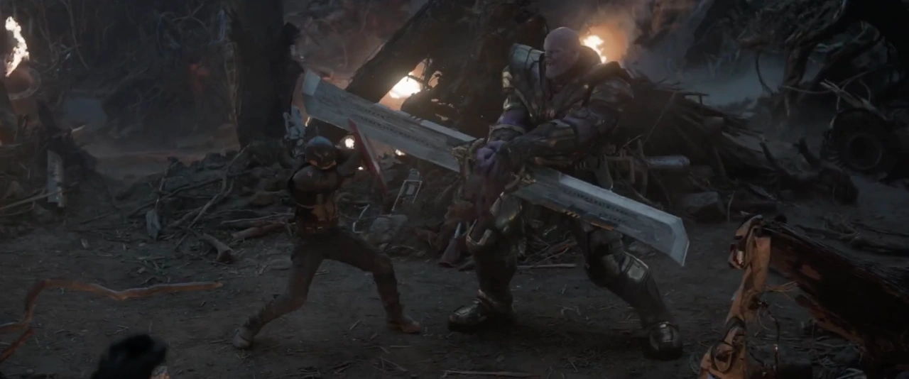 - Épée à double lames : Thanos a utilisé cette épée comme arme principale alors qu'il n'avait pas encore le gantelet d'infinité. Elle était extrêmement durable, capable de couper du vibranium comme le bouclier de Captain America, mais a finalement été coupée en deux par Wanda Maximoff.