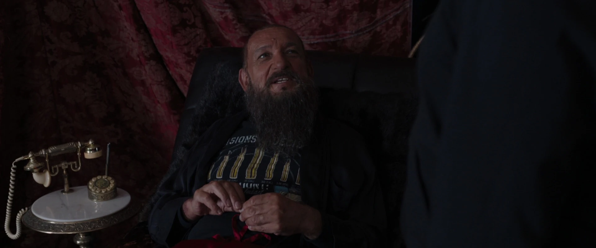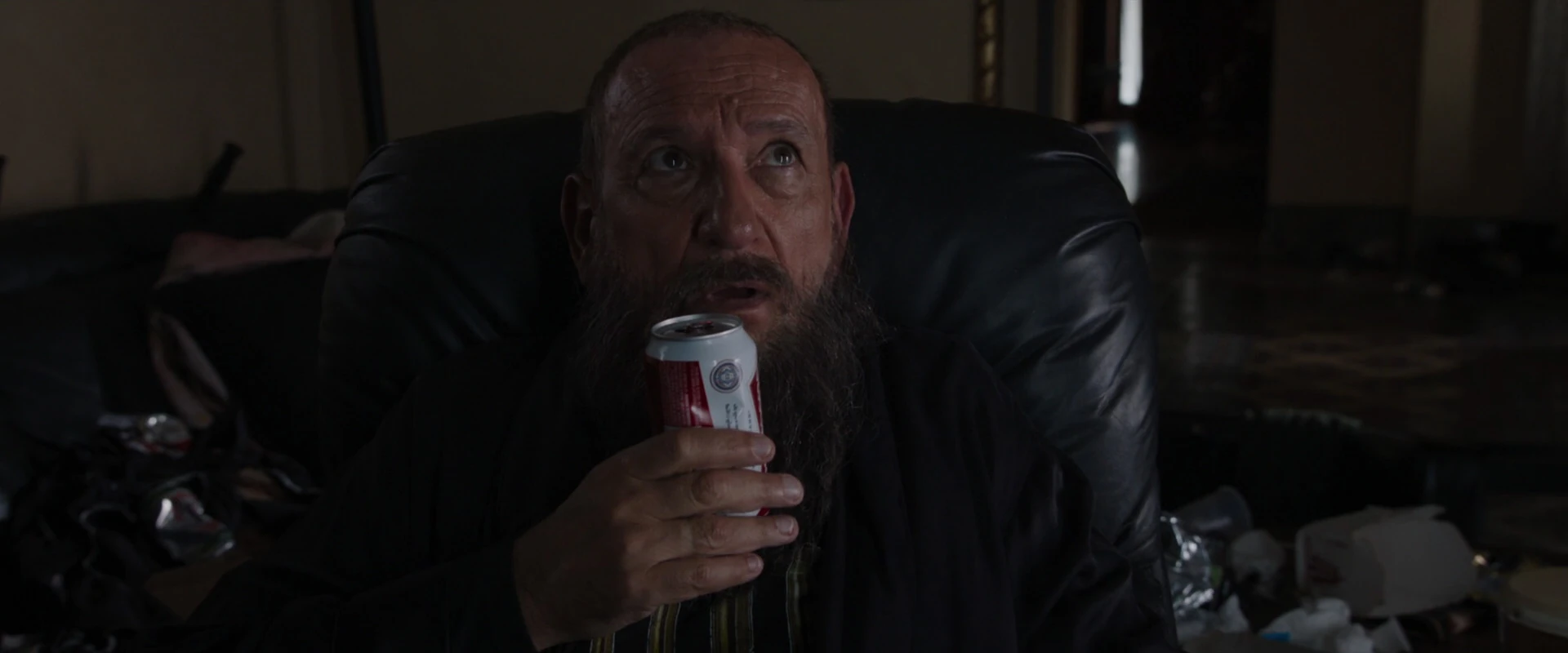 Alors qu'il continuait à ne pas comprendre la gravité de la situation, Slattery a commencé à se vanter d'être un régal de terreur sur mesure, retombant dans sa voix mandarine pour citer ses scripts pendant qu'il récupérait deux bières et en offrait une à Stark, qui l'avait transformée. vers le bas. Slattery s'est vanté que sa performance avait donné vie à leur mandarin, bien que Stark ait affirmé que sa performance avait contribué à la mort de personnes, ce que Slattery a nié.