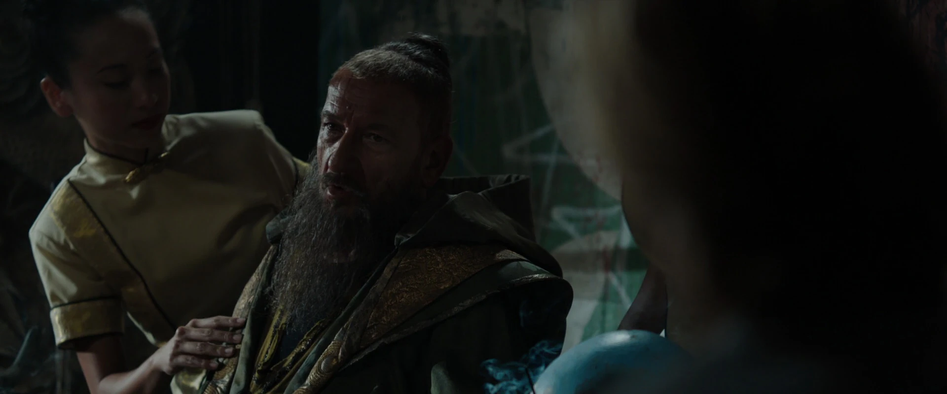 Surpris par cela, Slattery s'est demandé si les Dix anneaux étaient réellement réels, ce à quoi Norriss a insisté sur le fait que leur existence était bien documentée, Slattery se tournant vers Herman et exprimant son enthousiasme. Confus par sa surprise, Norriss a rappelé à Slattery ses affirmations selon lesquelles il avait étudié en détail le rôle du mandarin, ce à quoi Slattery avait affirmé que la recherche d'un acteur consistait à se googler et à regarder de la pornographie.