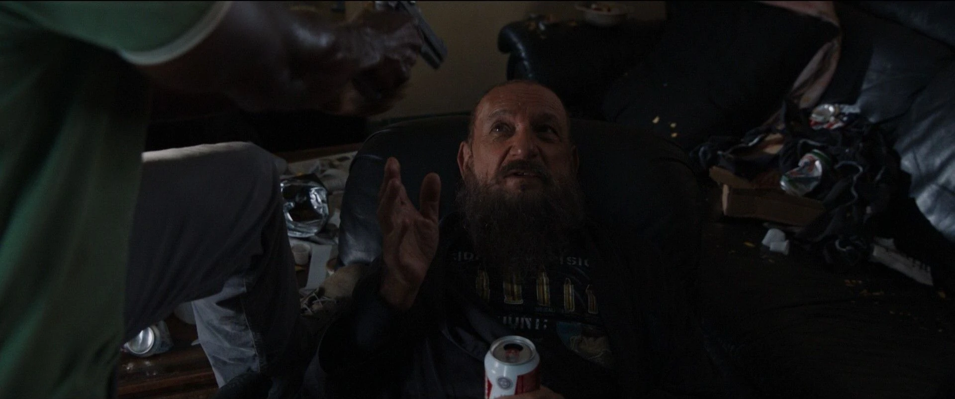 Choqué par l'arrivée de Stark, Slattery a immédiatement levé les mains et a exprimé sa surprise, tandis que Stark lui a ordonné de ne pas bouger. Tentant de sortir de la situation, Slattery a immédiatement proposé à Stark de prendre tout ce qu'il voulait dans la pièce, bien qu'il ait noté que les armes étaient en fait fausses, car on ne lui faisait pas confiance pour les vraies. Slattery avait alors proposé à Stark l'une des femmes avec qui coucher, ce que Stark a refusé.