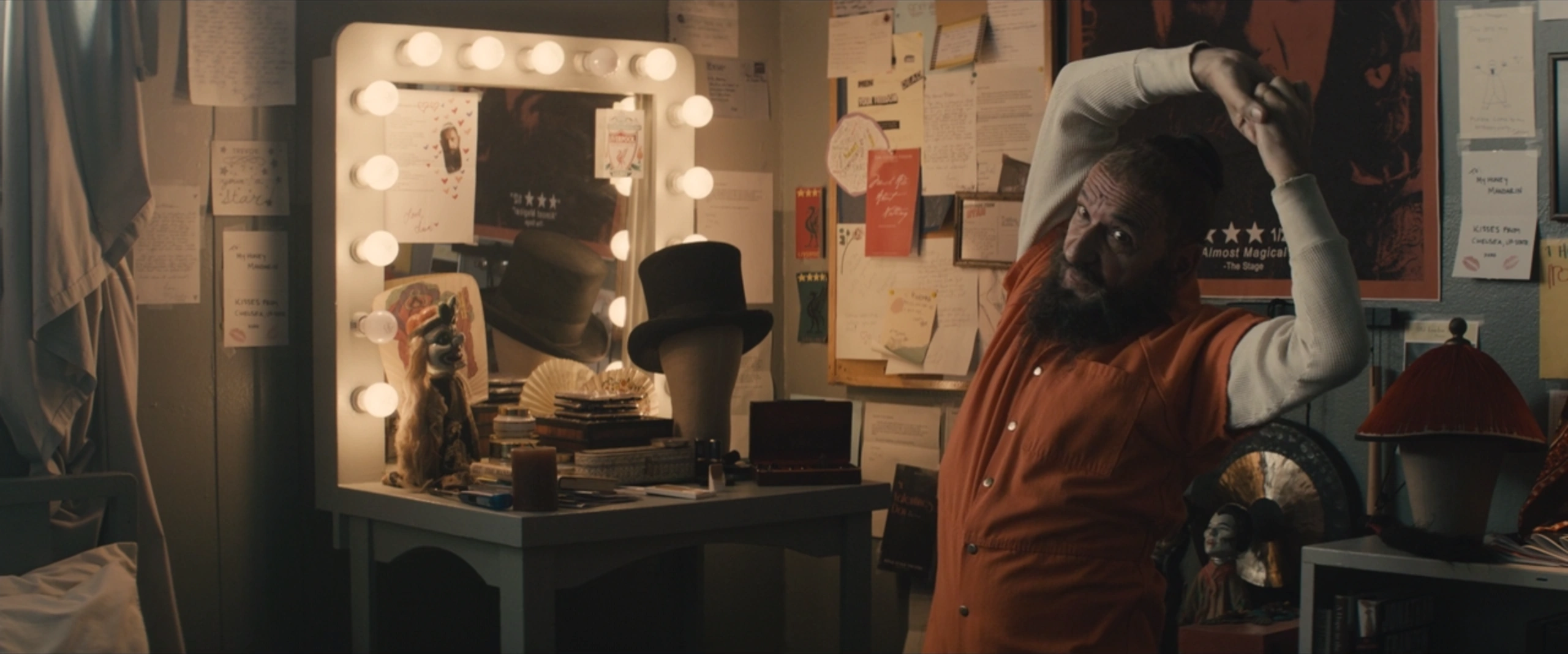 - "Je sais qu'il en fait un peu trop parfois. Ce n'est pas totalement de ma faute. Il a tendance à... il est habitué à la scène. Il paraît que son roi Lear faisait les délices de Croydon, où que ce soit."