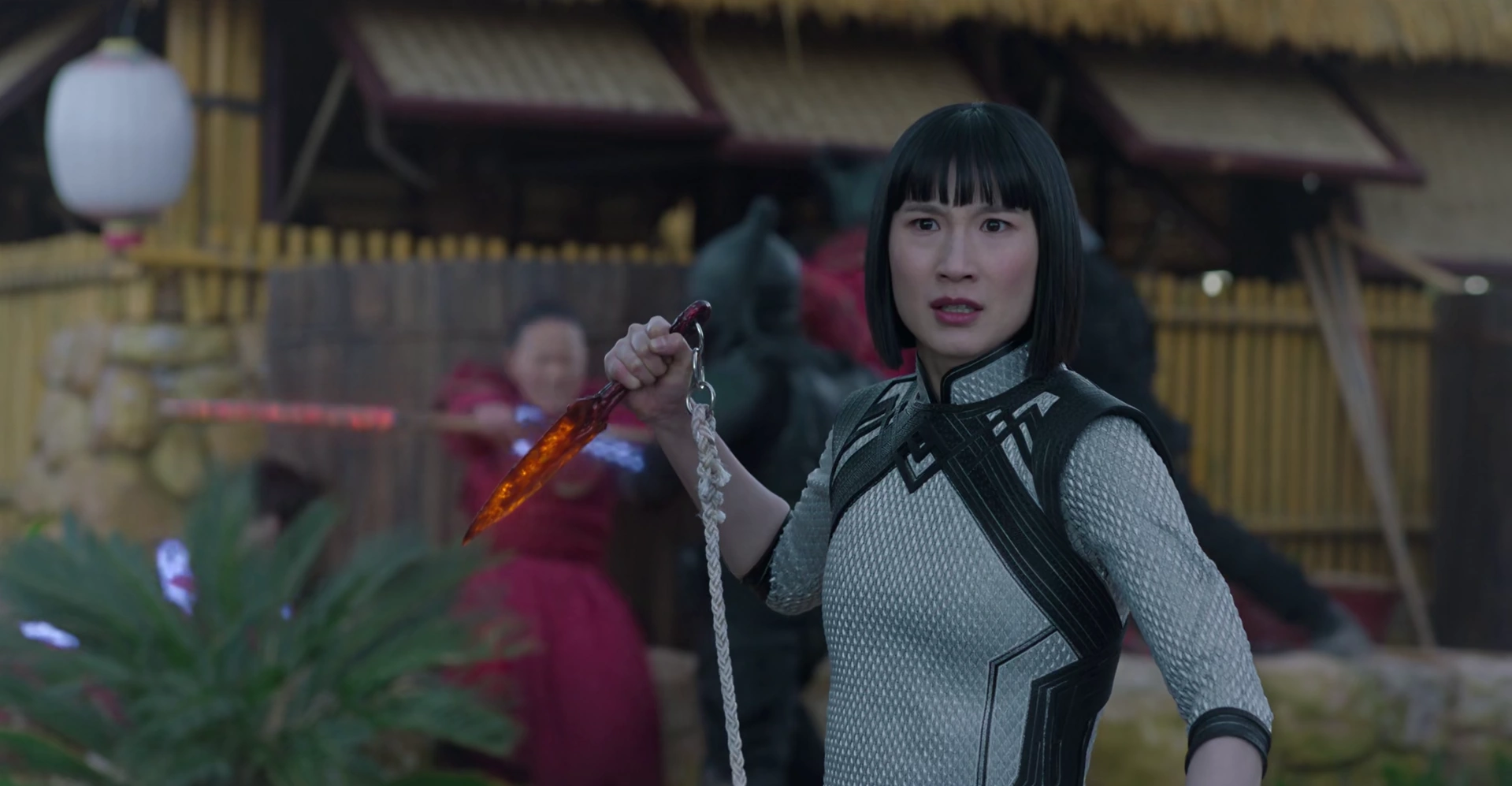 Xialing utilisa son fouet pour désarmer et vaincre rapidement plusieurs agents des Dix anneaux. Lorsqu'elle vit son frère attaqué par Razor Fist, Xialing utilisa son fouet à corde pour le retenir, ce qui lui permit de le faire tomber. Xialing dit à Shang-Chi de se rendre auprès de leur père avant qu'il n'ouvre la porte des ténèbres. Razor Fist se remit sur pied, donc Xialing continua à le combattre avec son fouet à corde, l'empêchant ainsi de se rapprocher d'elle.